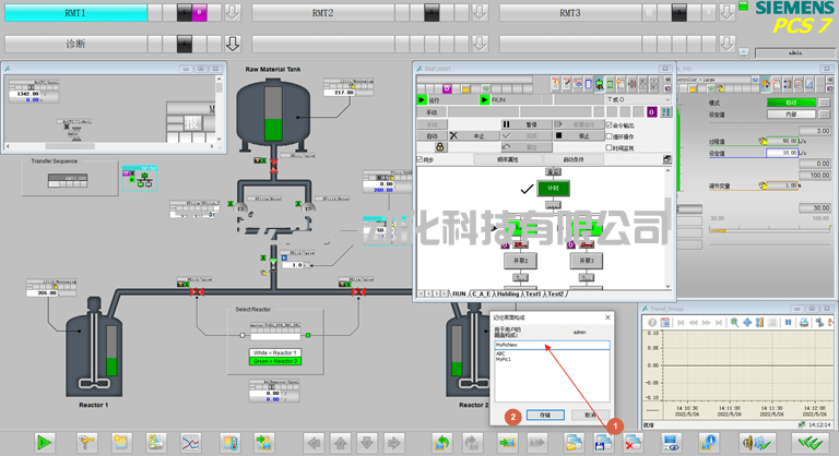 當打開其他流程畫面或切換用戶時,默認情況下重新回到RMT1畫面時面板會被自動關(guān)閉,其他添加的畫面窗口或趨勢組也有可能查看其他畫面時被關(guān)閉再返回到該界面便僅是RMT1的靜態(tài)界面中的內(nèi)容。重新打開這些窗口費時費力,而通過上圖中的保存畫面構(gòu)成,想要恢復(fù)這種畫面布局時,僅僅需要點擊打開畫面構(gòu)成按鈕,選擇之前保存的畫面構(gòu)成即可。