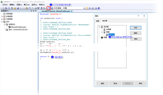 在 C 全局動作中添加一個全局動作,并將觸發(fā)器設置為周期 250 ms