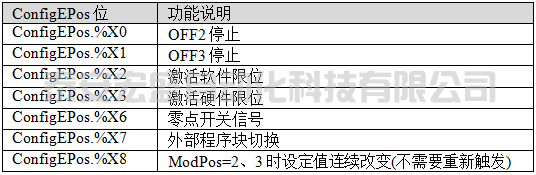 | ConfigEPOS | DWORD | 可以通過此參數(shù)控制基本定位的相關(guān)功能,位的對(duì)應(yīng)關(guān)系見下表 |