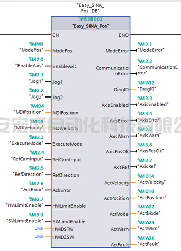 ? 方法三、PLC使用FB38002(Easy_SINA_Pos)功能塊,V90使用西門子報(bào)文111,此功能塊是FB284功能塊的簡(jiǎn)化版,功能比FB284少一些,但是使用更加簡(jiǎn)便。