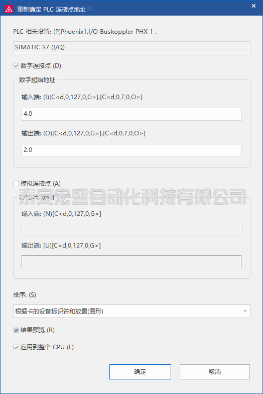 在“重選確定PLC連接點(diǎn)地址”界面下方勾選結(jié)果預(yù)覽,然后點(diǎn)擊確定??稍诰幹魄斑M(jìn)行結(jié)果的展示,如下圖所示。