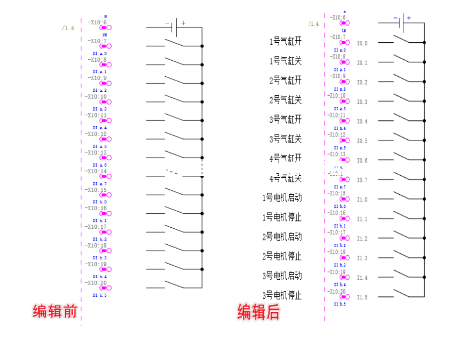 這樣就可將表格中提前規(guī)劃好的PLC地址以及對(duì)應(yīng)的功能文本快速且準(zhǔn)確的輸入到項(xiàng)目中去,極大地提高設(shè)計(jì)效率以及準(zhǔn)確率,結(jié)果如下圖所示。