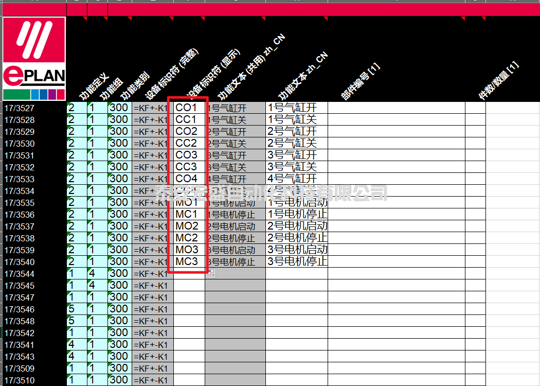 然后打開(kāi)規(guī)劃好的有PLC地址與功能文本的表格進(jìn)行復(fù)制,粘貼到EPLAN項(xiàng)目中表格式編輯對(duì)應(yīng)的配置列中,即可完成IO地址與功能文本的批量導(dǎo)入,如下圖所示。
