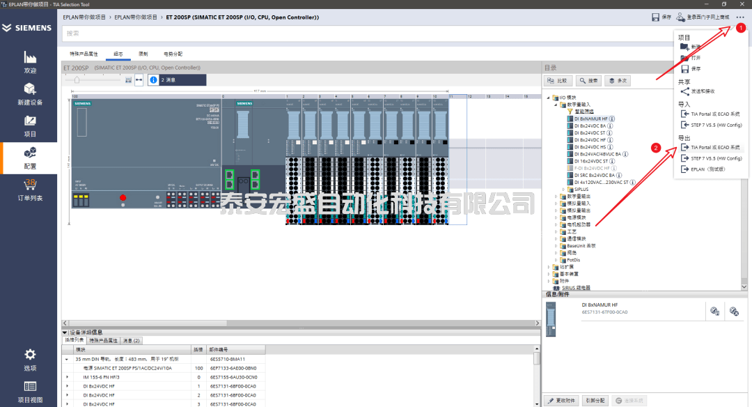 1) 導(dǎo)出:在TIA Selection tool的Port視圖右上角,找到“…”按鈕,選擇 導(dǎo)出>TIA Portal或ECAD系統(tǒng),如下圖所示。