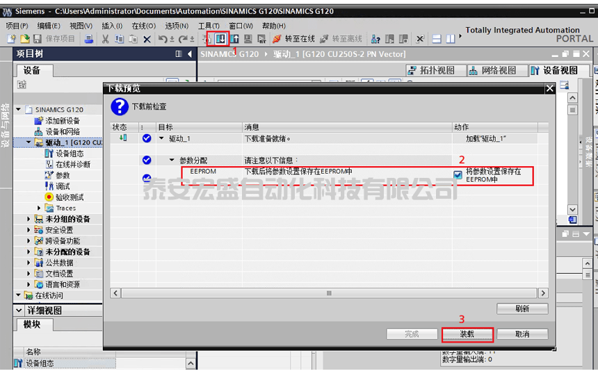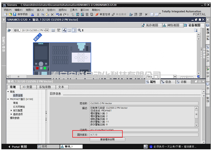 下面以G120 CU250S-2 PN為例,介紹將G120 CU250S-2 PN V4.7的項目文件,下載到控制單元CU250S-2 PN V4.7.13版本中的操作。
