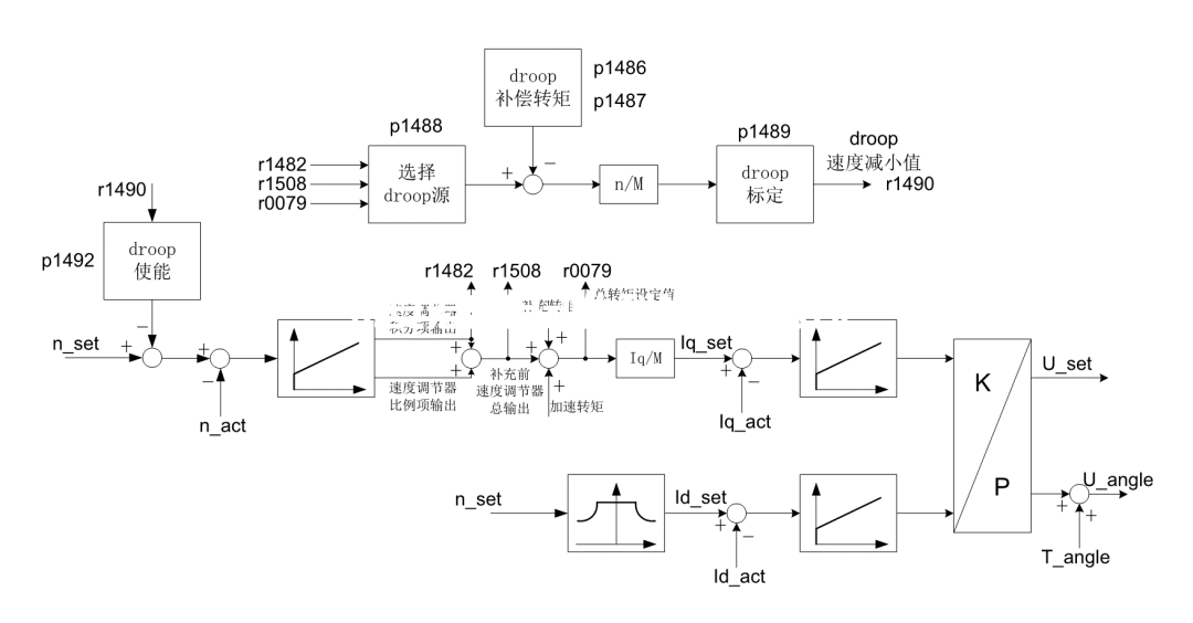 Droop控制方案即利用變頻器的Droop(軟化/下垂)功能實現(xiàn)負荷分配的方案。Droop方案包括不分主從的各自Droop方案和Droop加補償?shù)闹鲝目刂品桨傅?。下面詳細介紹不分主從的各自Droop方案。