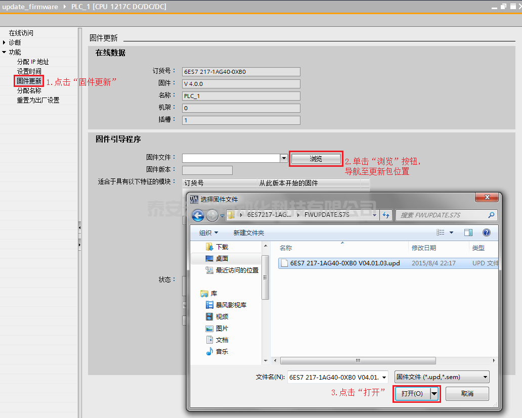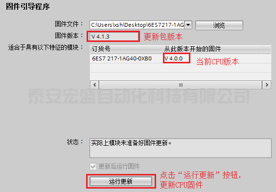 3.瀏覽到新版本固件后,點擊“運行更新”按鈕,即可執(zhí)行更新CPU固件操作。如圖3所示。