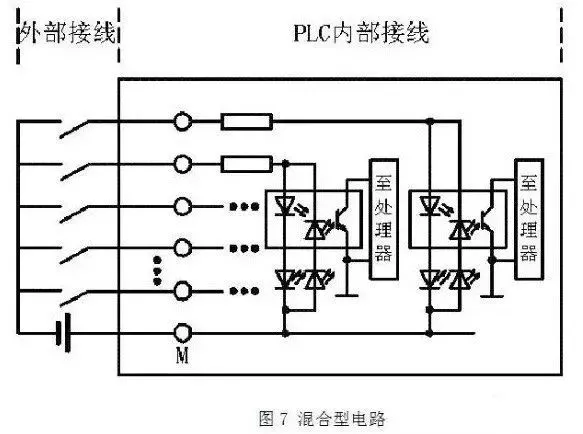 因為此類型的PLC公共端口既可以接外接電源的正極也可以接負極,同時具有源輸入電路和漏輸入電路的特點,所以我們可以姑且把這種輸入電路成為混合型輸入電路,如下圖所示: