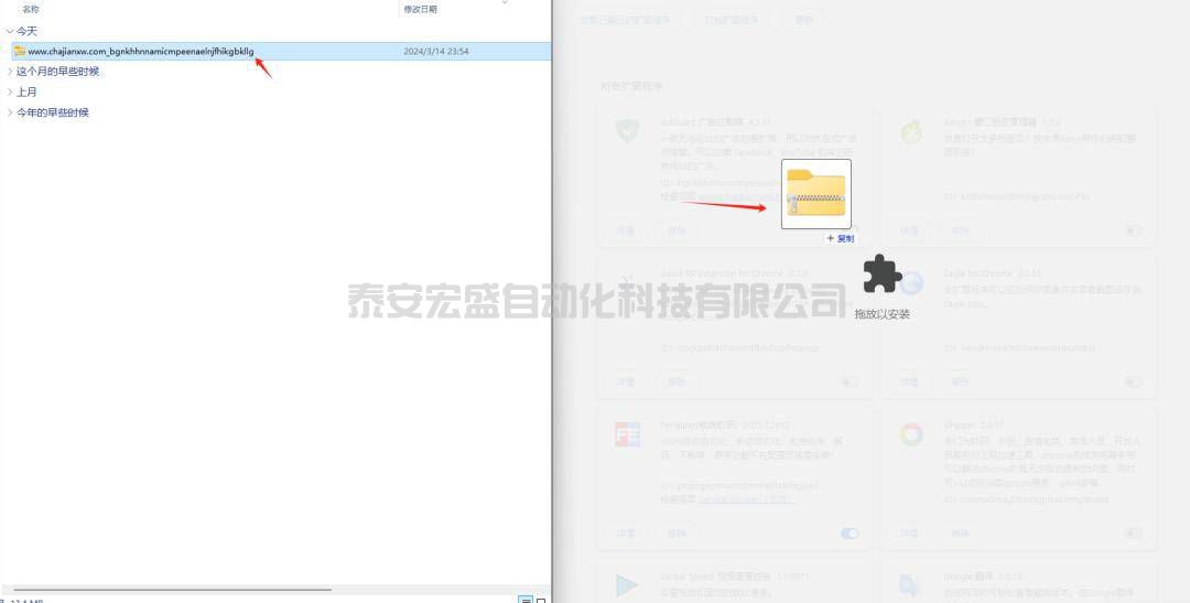 您可以將剛剛下載的插件壓縮包拖拽到擴(kuò)展程序界面,即可使用。