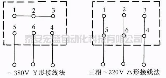 有部分三相吹風機有6個接線端子,接線方法如圖2所示。采用△形接法應接入220V三相交流電源,采用Y形接法應接入380V三相交流電源。一般3英寸、3.5英寸、4英寸、4.5英寸的型號按此法接。其他吹風機應按其銘牌上所標的接法連接。