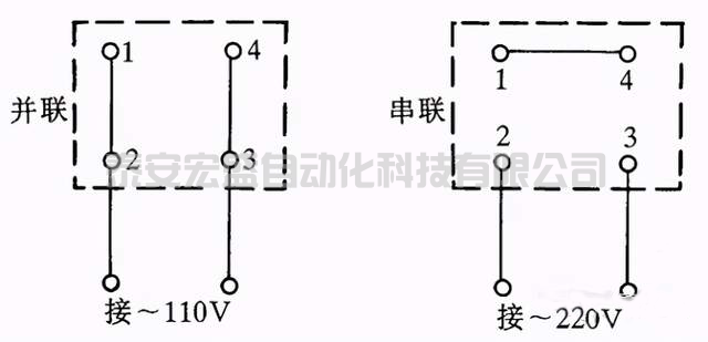 采用此法應注意兩點:一是在接線前必須把行燈變壓器次級一端與殼體的連接線(保護接地線)拆除;二是要注意行燈變壓器的初、次級繞組的電流都不能超過各自的額定電流值。