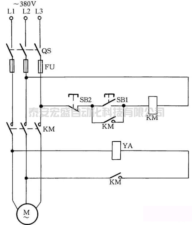 線路中YA為制動電磁鐵,在通電后,制動解除;在斷電后,YA立即制動。