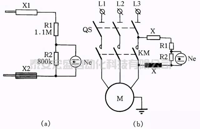 用電阻、電容、氖泡可組成一小型電源相序指示器。當電源按順相序L1、L2、L3接入時,氖燈就亮;按逆相序L2、L1、L3接入時則氖燈不亮。線路如圖25(a)所示。