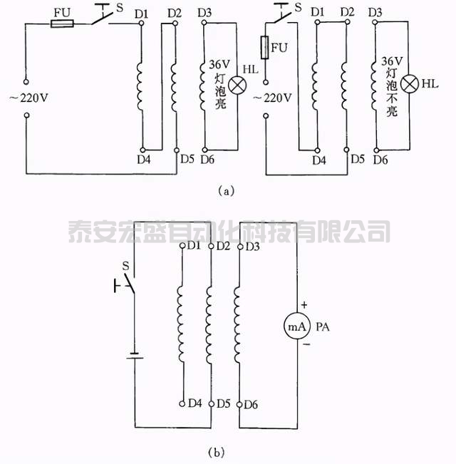 在電動機6根引出線標記無法確認時,我們可利用交流電源和燈泡檢查電動機三相繞組的頭尾端,以免將繞組接錯。