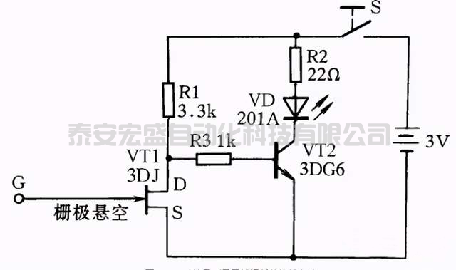 圖28所示是一感應測電筆線路。它可方便地測出導線的斷芯位置。在用來測導線斷芯位置時,在導線一端接上220V的電源相線,然后用感應測電筆的探頭柵極靠近被測導線,并沿線移動。如果發(fā)光二極管在移動中突然熄滅,那么此處便是導線斷芯位置。
