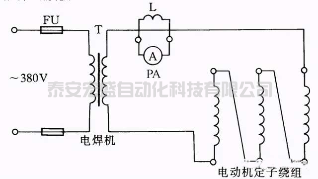 如果電動機受潮,而體積又較大,很不容易拆下放在烘箱內(nèi)干燥。可將電焊機低壓電通入電動機三相繞組,用電流升溫干燥電動機。此方法適用于干燥20~60kW的電動機,電焊機的容量應根據(jù)電動機容量而選用。通入電動機繞組線圈的電流可由電焊機來調(diào)節(jié),但在烘干時應注意通入電動機的電流不能超過電動機本身額定電流太多,并且注意觀察電動機和電焊機溫度都不能升得過高。線路參見圖31。