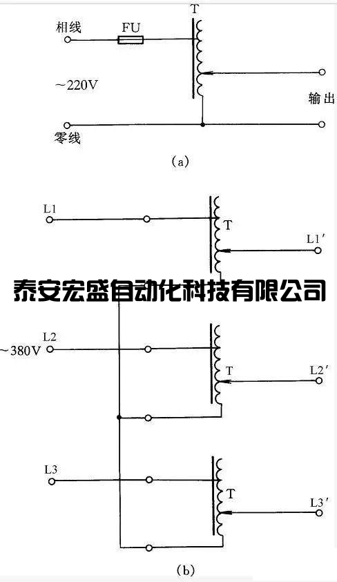 單相自耦調(diào)壓器在工廠等應用極為廣泛。其接線線路如圖35(a)所示。