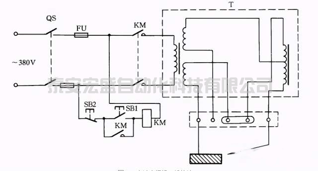 交流電焊機一般接法如圖39所示。當合上刀閘QS時,按下按鈕SB1,接觸器KM得電吸合;松開按鈕SB1時,KM自鎖觸點自鎖,電焊機繼續(xù)得電工作。當按下SB2時,電焊機停止工作。