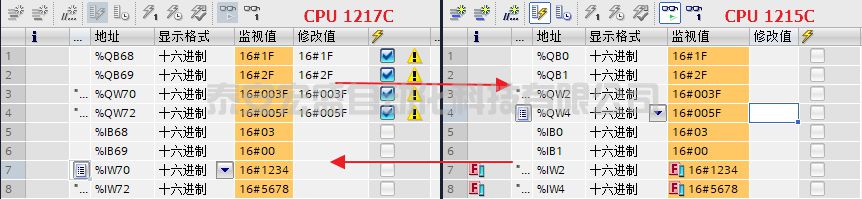 這樣1217控制器可以直接控制1215智能IO設(shè)備上的Q區(qū)數(shù)據(jù),同時讀取I區(qū)數(shù)據(jù)。測試結(jié)果如下: