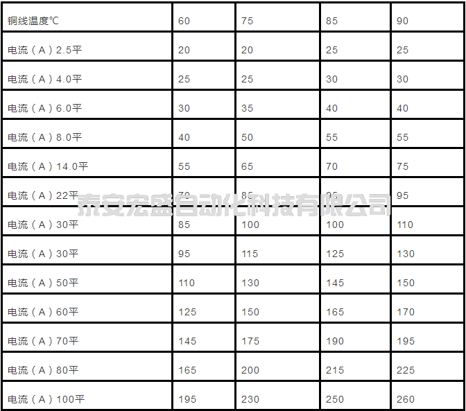 下面是銅線在不同溫度下的線徑和所能承受的最大電流表格。