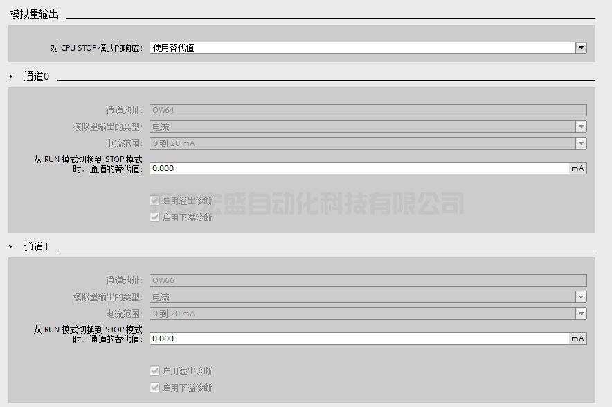 ② “通道地址”:模擬量輸出首地址在模擬量的“I/O 地址”中設(shè)置;