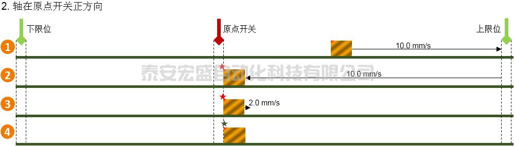 無論用戶設(shè)置尋找原點(diǎn)的起始方向?yàn)檎较蜻€是負(fù)方向,軸最終停止的位置取決于 “上側(cè)”或“下側(cè)”。