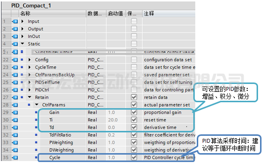 圖16.PIC Compact 工藝對(duì)象數(shù)據(jù)塊中的 PID 參數(shù)