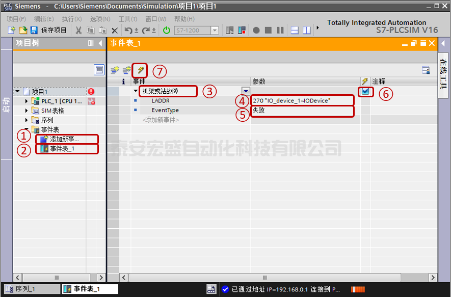 PLCSIM V16增加新功能,事件激活測試??梢酝ㄟ^模擬一個事件,測試程序中的診斷功能是否生效。如圖12所示,以機架故障為例。