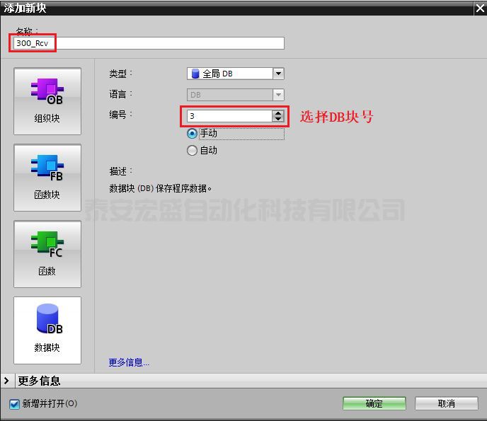 (1)創(chuàng)建并定義 S7-300 的接收數(shù)據(jù)區(qū) DB 塊。