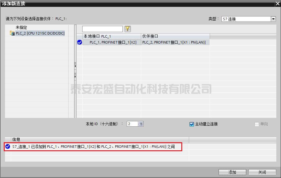 (2) 然后在“添加新連接”窗口中,選擇“PLC_2[CPU1215C DC/DC/DC]”,然后點擊“添加”建立 S7 連接,如圖 8 所示。