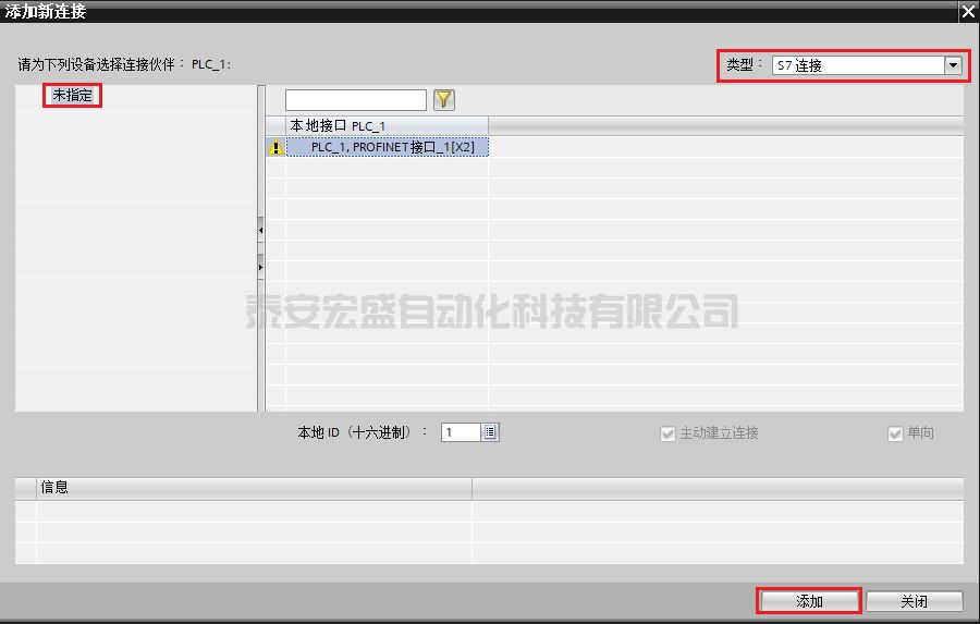 (3)通訊伙伴選擇非指定(Unspecified),通訊類型選擇 S7 connection,如圖 69 所示。