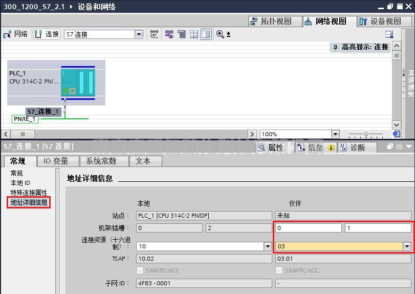 (7)在屬性的常規(guī)選項卡中的"地址詳細信息"欄,可查看連接的 TSAP 號,如圖 13 所示。