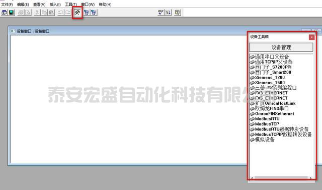 (3)單擊工具條中的“工具箱”按鈕,如下圖所示,打開(kāi)設(shè)備工具箱。