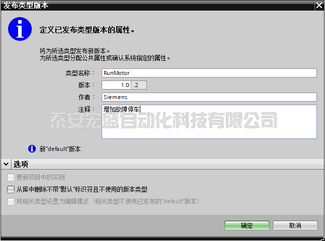 庫的類型功能,可對標(biāo)準(zhǔn)塊,包括FB、FC、PLC數(shù)據(jù)類型(UDT)等進(jìn)行版本控制。使用庫的類型功能在每次程序變更時,能夠?qū)崿F(xiàn)對版本號的更新,支持編輯作者、注釋等信息。如圖4所示。