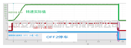 2) 當(dāng)變頻器處于S4運(yùn)行狀態(tài)時,變頻器會按著OFF1斜坡下降時間進(jìn)行制動,電機(jī)靜止后切換為S2接通就緒。