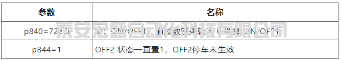 設(shè)置參數(shù)p0844[X],p0845[X]兩個參數(shù)為邏輯與的關(guān)系,當(dāng)有一個參數(shù)置0時變頻器觸發(fā)OFF2停車命令。