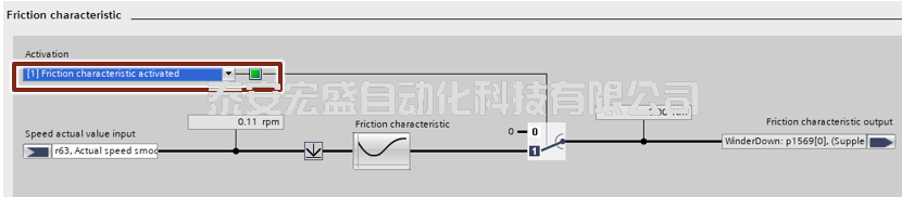 5)設(shè)置p3842=1,激活摩擦特性曲線,變頻器會(huì)將摩擦特性曲線r3841的輸出添加到扭矩設(shè)定值上。