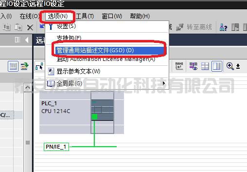 6、點擊“選項”菜單在下拉菜單中點擊“管理通用站描述文件(GSD)”如下圖所示;