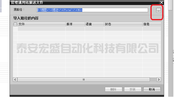 8、點擊打開后對話框如下;在圖1處可以看到顯示GSD文件存放路徑,存放文件路徑后在圖2位置會自動顯示可以加載的GSD文件,此時選中GSD文件,點擊下方3處安裝;