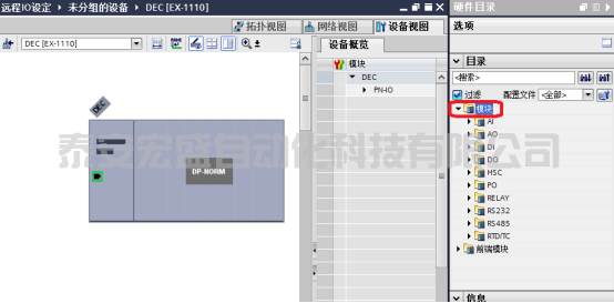 15、點擊目錄內(nèi)“模塊”下拉菜單顯示可以添加的模塊種類有很多,下面依數(shù)字量I/O為例演示;