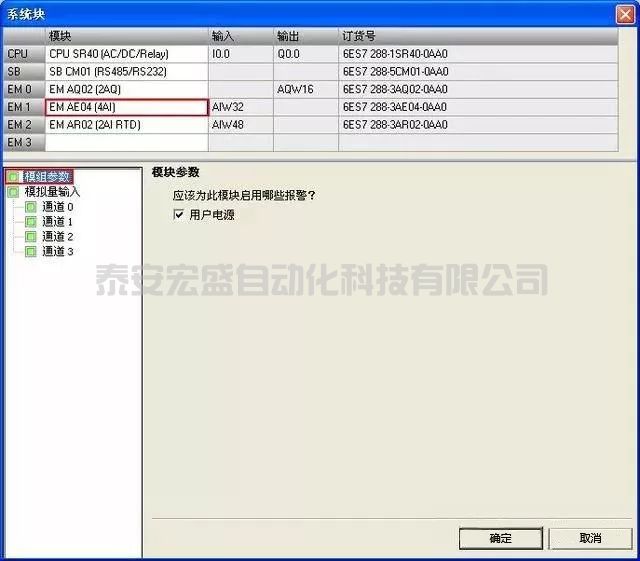 單擊"系統(tǒng)塊"(System Block) 對話框的"模擬量輸入"(Analog Inputs) 節(jié)點為在頂部選擇的模擬量輸入模塊組態(tài)選項。