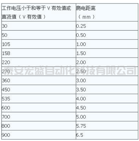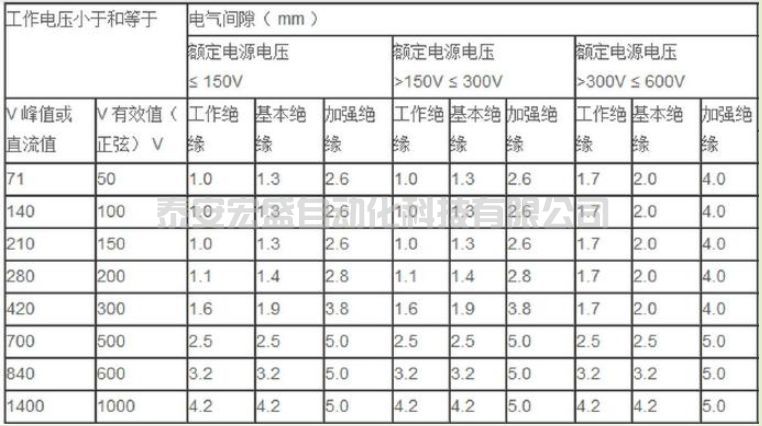 最后,從下表中查出對(duì)應(yīng)的電氣間隙