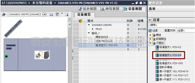 2. 在V90 PN的設備視圖中插入西門子報文111