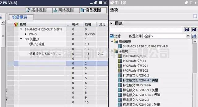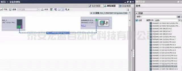 選好后拖拽到硬件組態(tài)中,然后設(shè)定總線使用之前PLC創(chuàng)建的PN1。